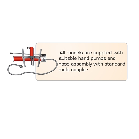 All models are supplied with suitable hand pumps and hose assembly with standard male coupler.